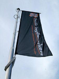 Digitaal print is een snelle en voordelige manier om 1 of enkele stuks vlaggen met een eigen opdruk te maken.