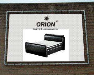 Gevelbanners Gevelbanners Gevelbanners worden gebruikt op 2 manieren, haaks op de gevel met uithouders of plat op de gevel met een raamwerk. De meest gebruikte formaten hiervoor zijn;Haaks, maximaal 100 cm breedPlat, elk formaat wat u maar wilt Gevelbanners kunnen worden gemaakt van glanspolyester 115 gr/m2 of PVC-doek.